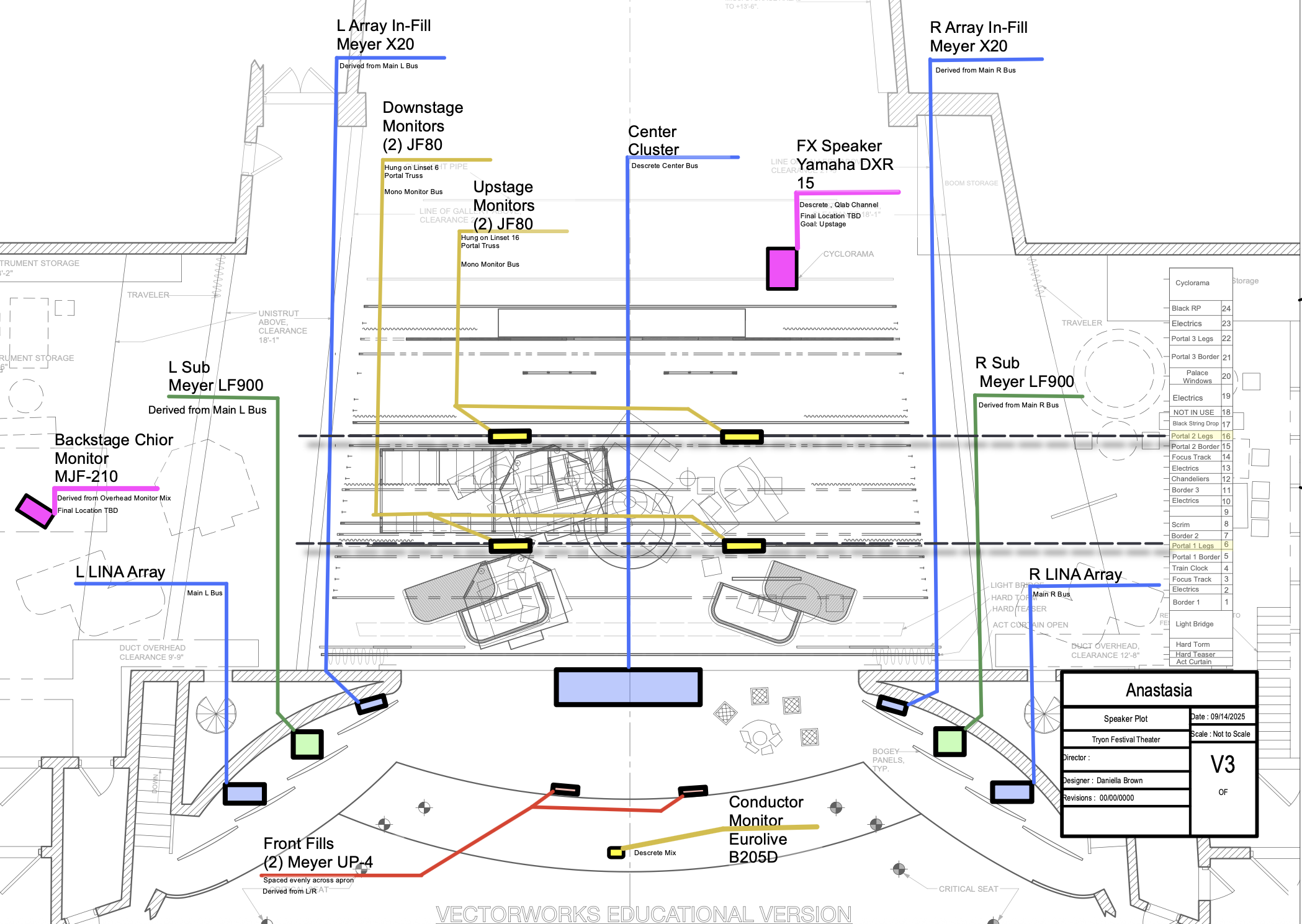 In Anastasia:We transport audiences from the twilight of the Russian Empire to the vibrant streets of 1920s Paris. Anya, a spirited young woman with a mysterious past, embarks on an adventure to uncover her true identity. My Design was focused on exaggerating the band and performers to create a magical feeling.